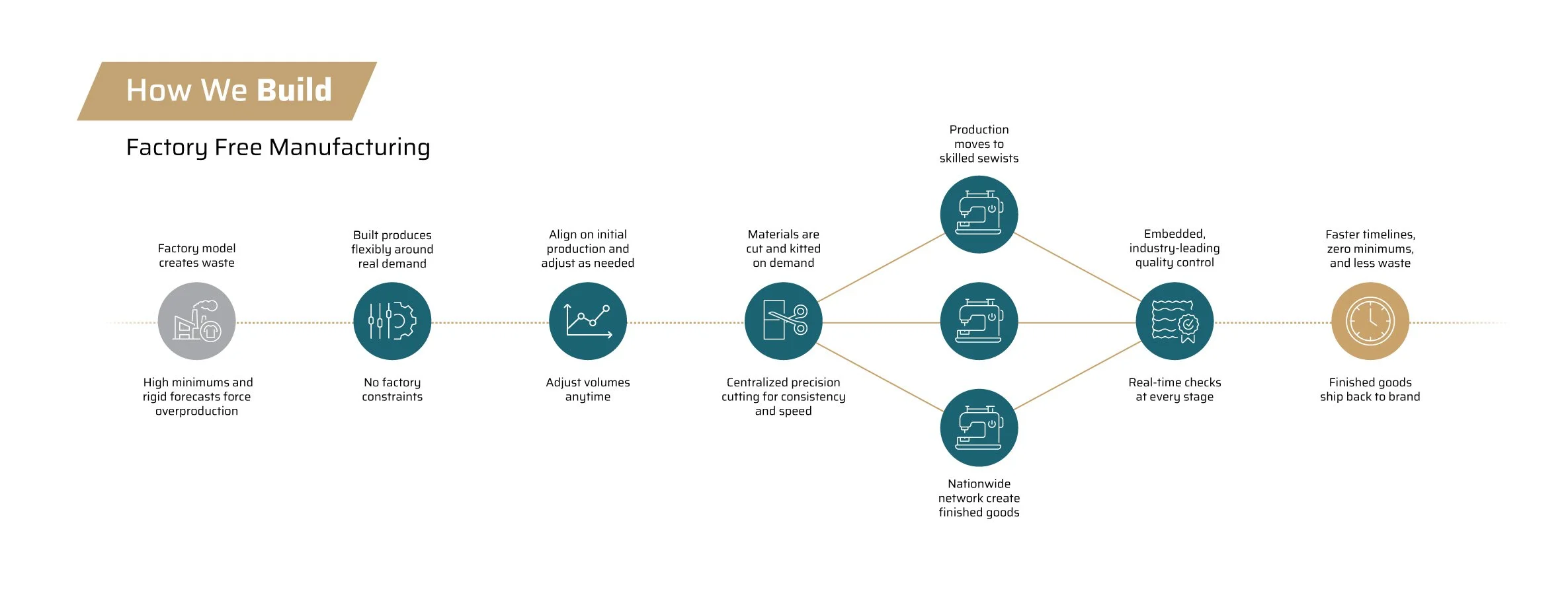 Moving fast without sacrificing quality. Built gives brands scalable production powered by skilled sewists and a system designed for precise flexibility, without shortcuts or compromise.